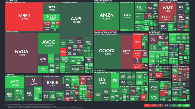 米国株投資 【20251201】US stock market investments Muroi Kazuo S&P500 ヒートマップ(高解像度) 3%以上上昇した主な銘柄 SNPS Synopsys, Inc.(Techn …