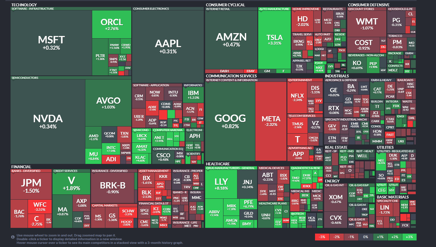本日の米国株市場は、政府閉鎖による不安と経済指標の改善が交錯し、指数は小幅ながらも安定感を示しました。特にヘルスケアやハイテクなど成長分野への資金流入が見られる一方、広告や金融関連には調整圧力も残っています。地政学的リスクや統計発表の遅延懸念など不透明要因は続きますが、長期視点での分散投資や基盤の強い企業への注目が重要と感じます。投資は自己責任にてお願いします。成果や結果に一喜一憂せず、共に学び成長していければ嬉しいです。