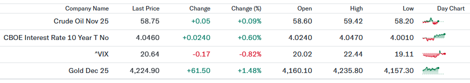 ハイテク銘柄中心に買い戻しの動きが強まり、利下げ観測を背景にディフェンシブ系にも資金が回ったことが指数押し上げ要因となりました。 - Dow30(終値:46,253.31、前日比 −0.04%)