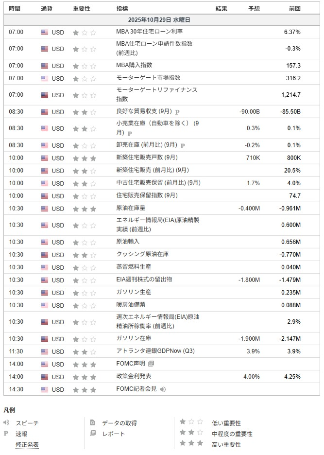 FRBが年内に利下げを実施するとの見方が広がり、米10年債利回りが低下しました。これを受けて、成長株を中心に買いが強まり、投資家のリスク選好が高まりました。(Reuters、2025年10月28日) - 金価格の下落とリスク選好の回復