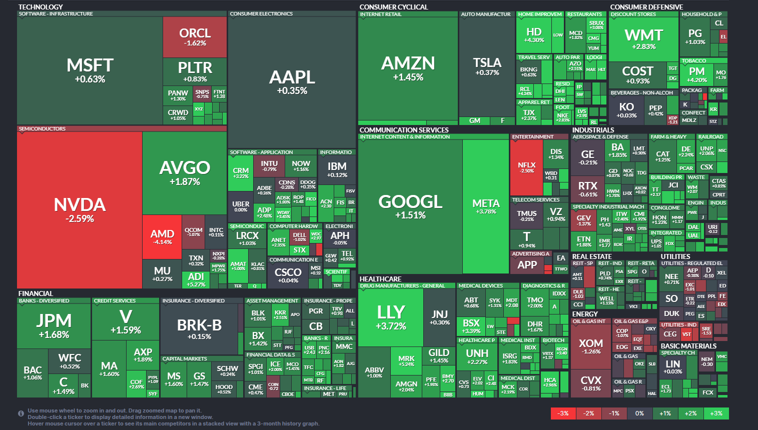 AIインフラ投資やクラウド協業の報道を契機に、将来の成長モデル期待が再燃して株価を牽引。 - LLY(Eli Lilly & Co.) 騰落率 +3.72%