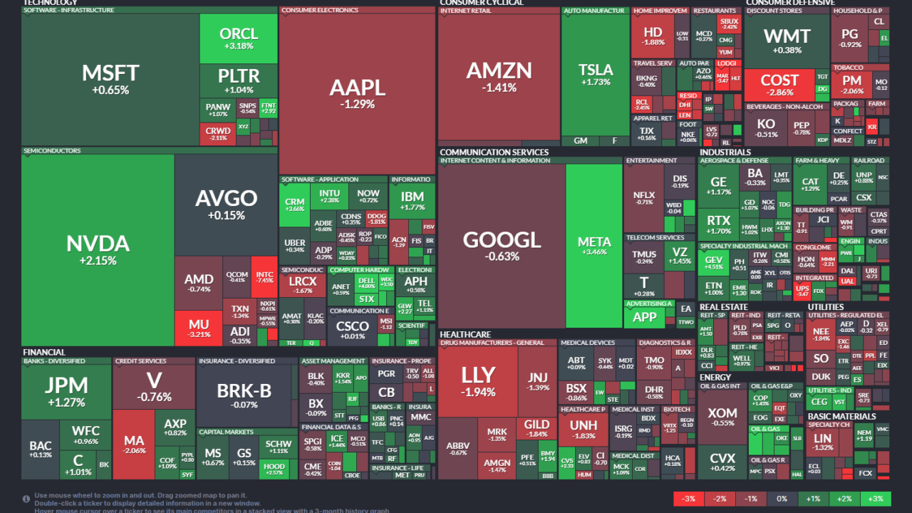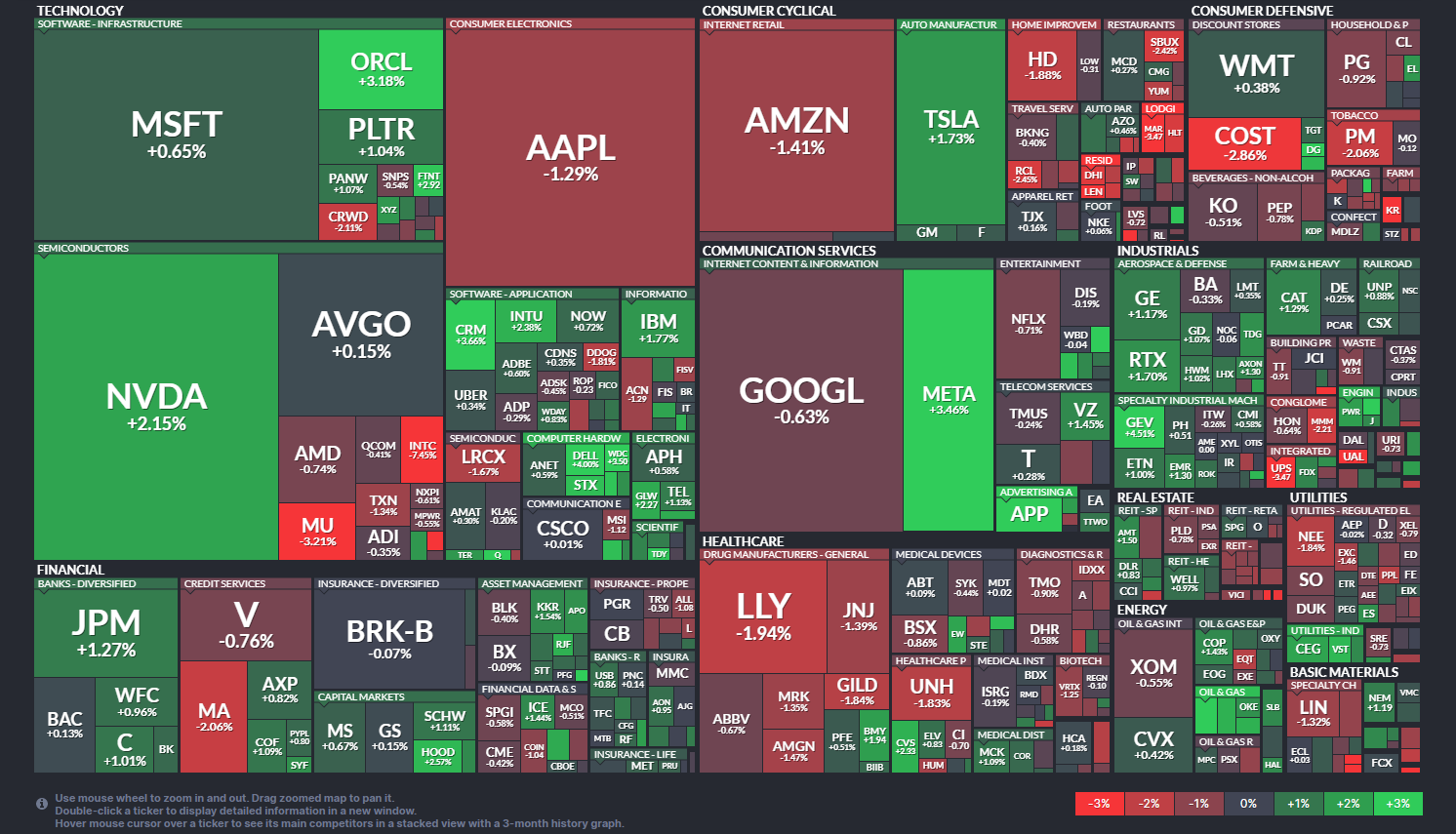 AI最適化広告プラットフォームの成長が続き、収益拡大期待が株価上昇を牽引した展開。ゲーム広告需要の回復も追い風となり、関連セクター全体の買いを集めた相場展開。 - ORCL:Oracle Corp(Technology)+3.18%