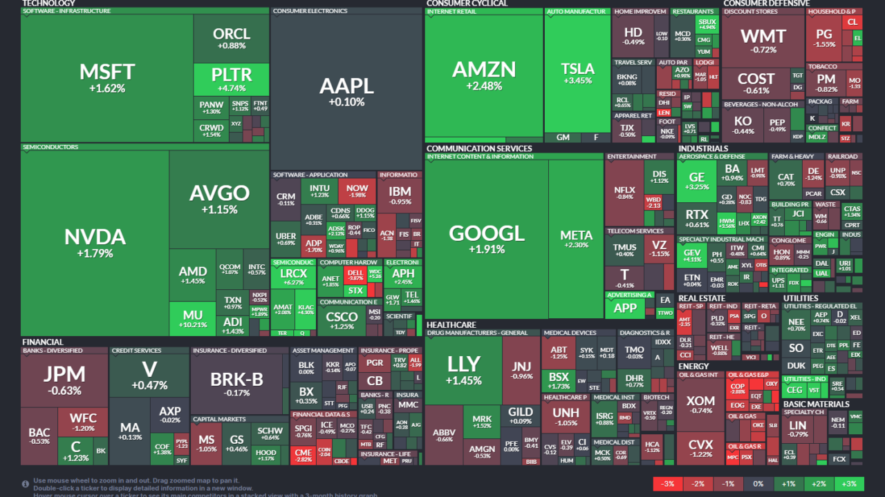 AI・半導体関連を中心に成長期待が再評価された動き。設備投資回復観測と中長期の利益成長シナリオが意識され、金利高止まり環境下でも押し目買いが入った上昇局面。 - 通信サービス(Communication Services) +1.41%