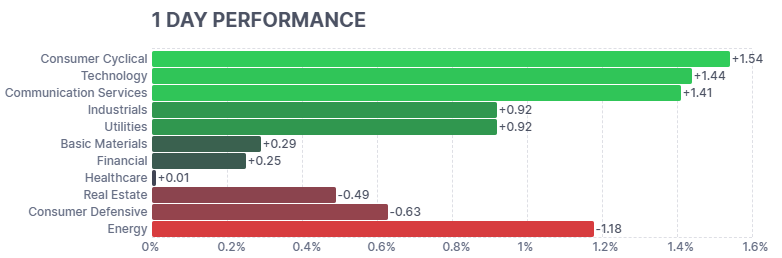 セクター別では、消費関連とハイテクを中心にリスク選好が優勢となる一方、エネルギーは原油安を背景に下落する構図。景気敏感と成長期待の強弱が明確に分かれた一日。