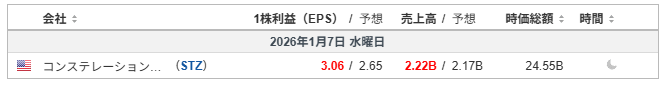 1株利益は3.06ドルと市場予想2.65ドルを大きく上回り、売上高も22.2億ドルと予想を超過。主力のビール事業が米国内で堅調に推移し、価格転嫁と販売数量の増加が利益を押し上げた形。ワイン・スピリッツ部門の再構築も進み、収益性改善が評価された決算内容。