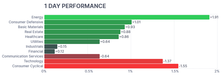 原油価格の上昇と地政学的リスク意識を背景に、資金がエネルギー株へ集中した動き。キャッシュフロー創出力の高さと株主還元期待が評価され、セクター全体が相対的に強い上昇となった局面。 - 生活必需品(+1.01%)