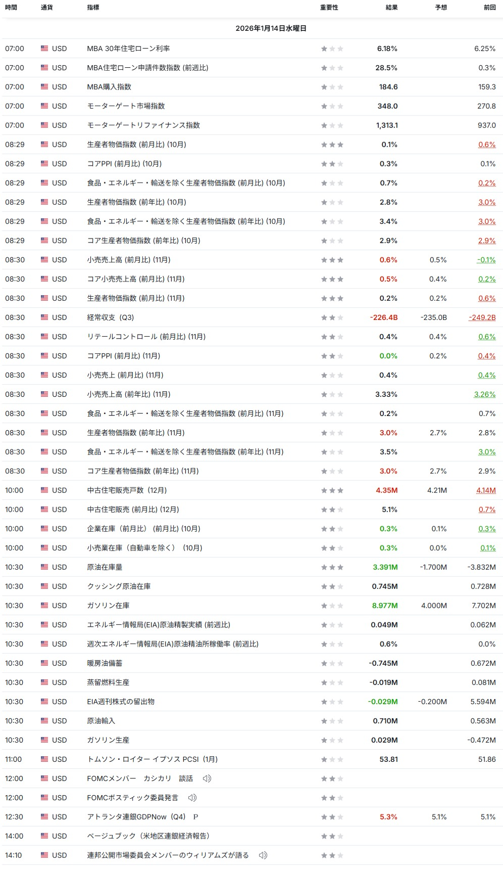 - 経済指標結果/予定: investing.com日本語版