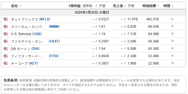 1/19(月)は休場です。1/20には、以下の経済指標が発表される予定です。