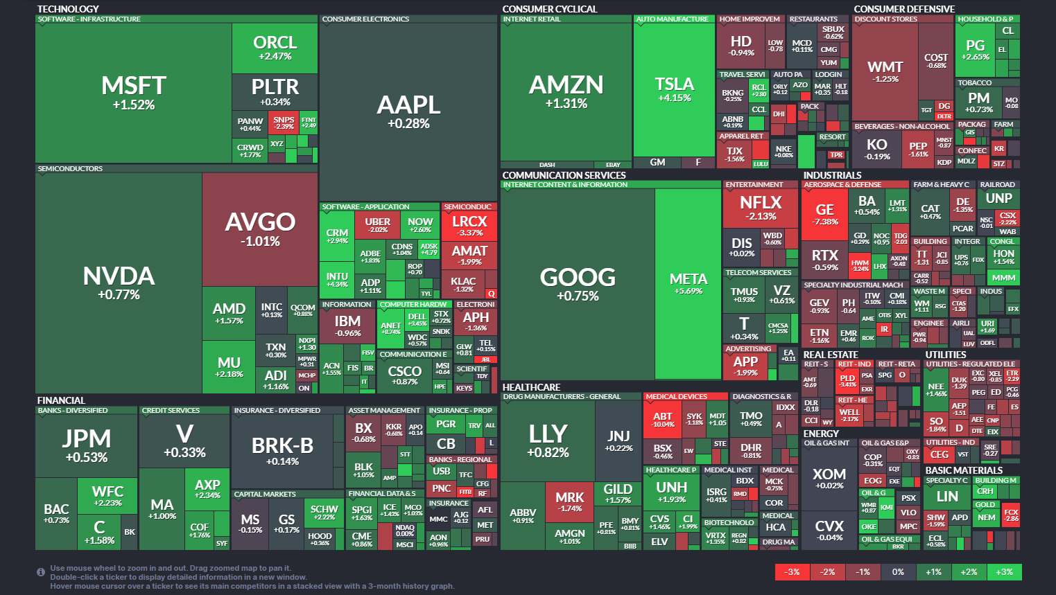 資産運用・信託業務の収益改善期待が材料視された。市場環境の安定化により運用残高増加が見込まれ、手数料収入の底堅さが評価されて金融株全体の上昇を上回った。 - META:Meta Platforms Inc(通信サービス) +5.69%