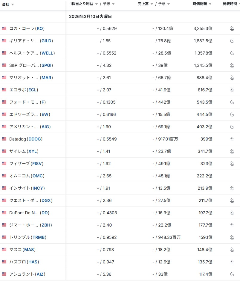 - 決算発表結果/予定: investing.com日本語版