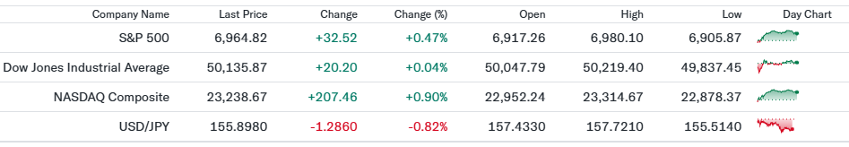 - S&P500(6,964.82、前日比+0.47%)