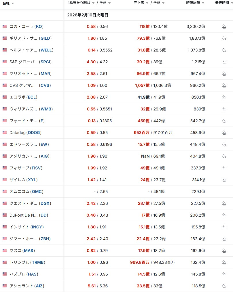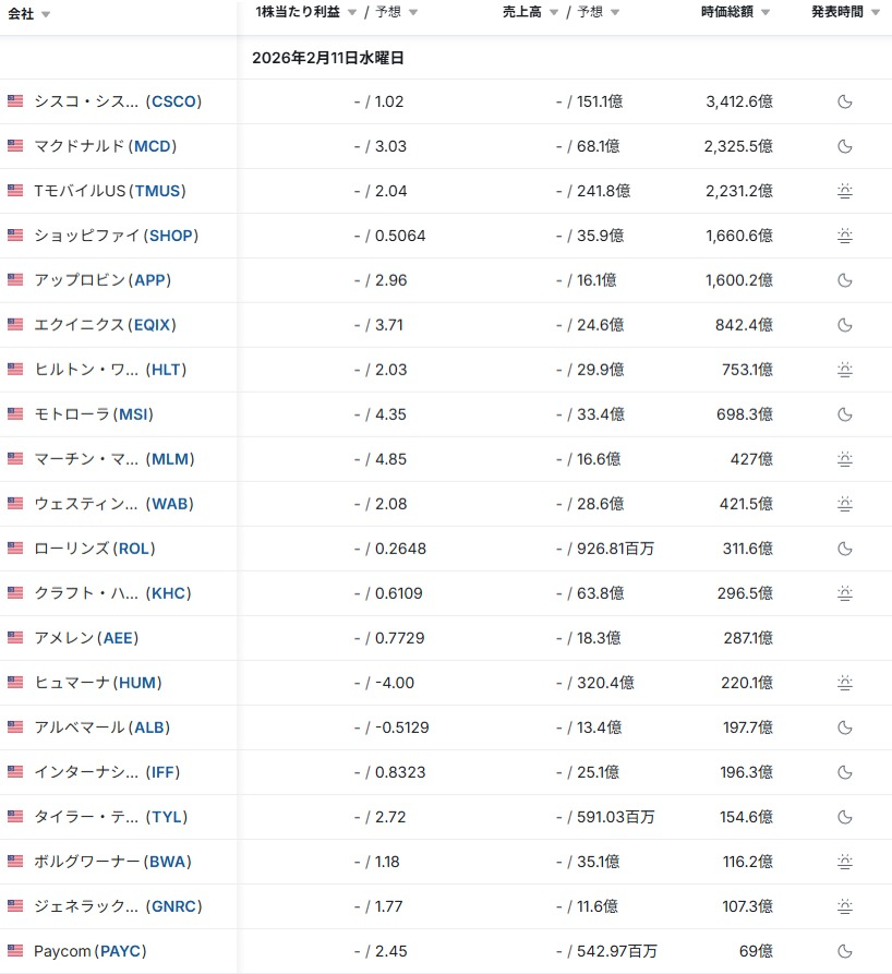 - 決算発表結果/予定: investing.com日本語版