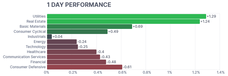 米10年国債利回りの低下を受け、配当利回りの相対的な魅力が高まった。景気変動の影響を受けにくい安定収益セクターとして、防御的資金の流入が顕著である。 - 不動産、+1.24%