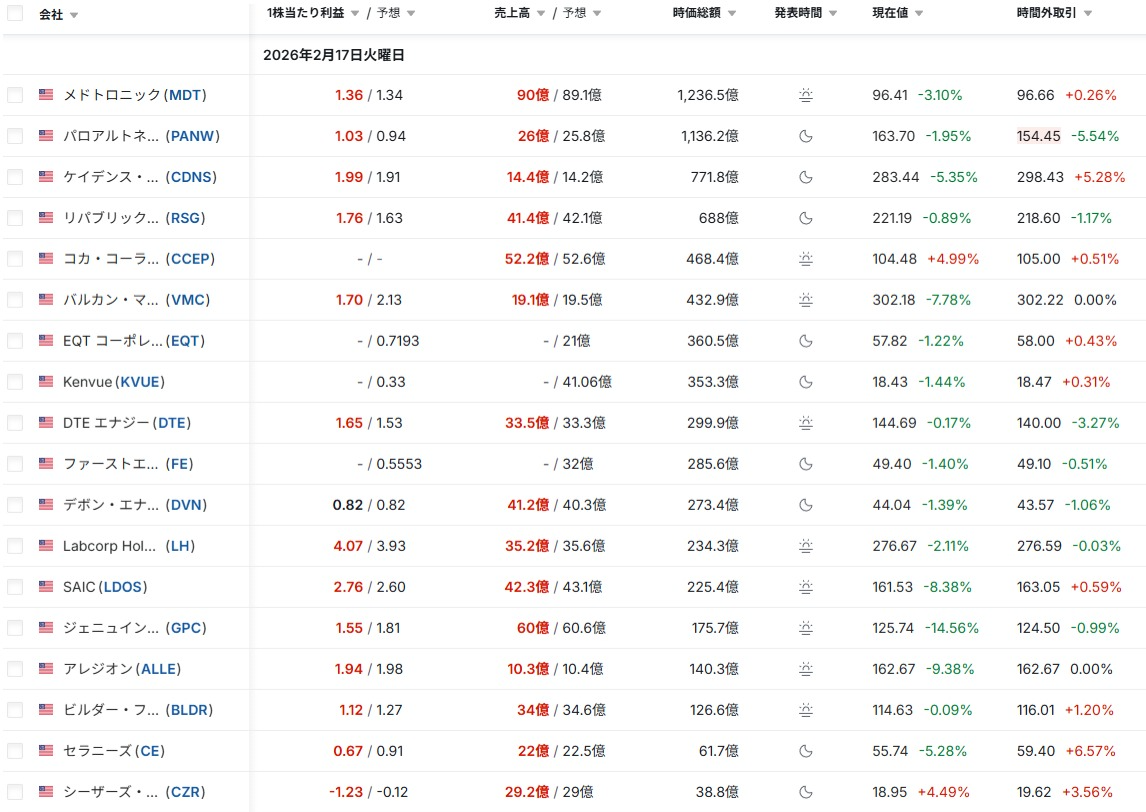 EPS1.36ドルは予想1.34ドルを上回り、売上も市場予想を小幅に超過した。医療機器需要は堅調で、特に心血管関連製品が伸びを牽引した。一方で通期見通しは慎重であり、為替やコスト圧力が利益率の重石となる見通しである。 - PANW:Palo Alto Networks, Inc.(先端技術)