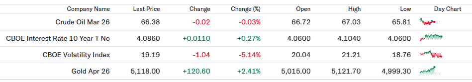 関税返金による財政悪化懸念とインフレ指標の底堅さが意識され、長期金利は上昇した。リスク選好回復でも債券売りが優勢となり、利下げ時期後ずれ観測が金利の下支え要因となった局面である。 - VIX指数(19.19、-5.14%)