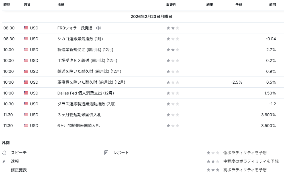 最高裁判断でリスク選好が戻る一方、返金で財政悪化が意識され長期金利が上がりやすい。ドルは安全通貨需要が剥落しやすい反面、利下げ後ずれ観測が下支えし、方向感が出にくい局面である。(Bloomberg:02/20) (Bloomberg.com)