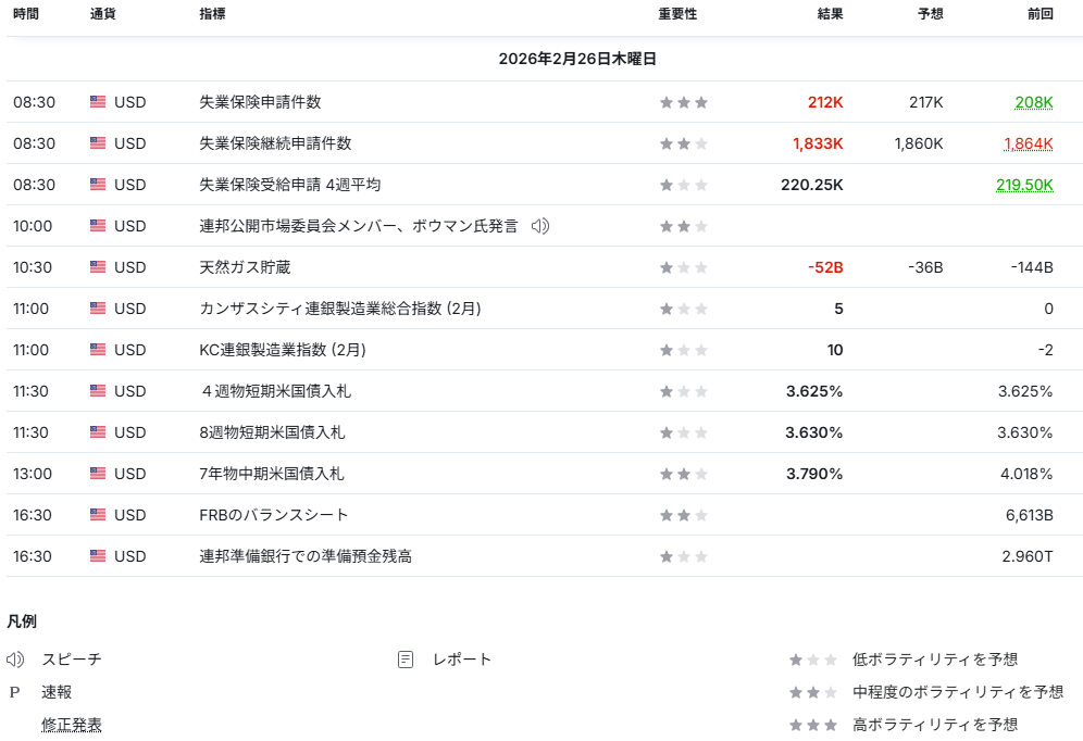 新規失業保険申請件数は低水準を維持し、労働市場の底堅さを示した。賃金上昇圧力がインフレ持続につながるとの見方から、FRBの利下げ時期観測が後退している。(Investing.com:02/26) - ウクライナ情勢と欧州エネルギー供給不安