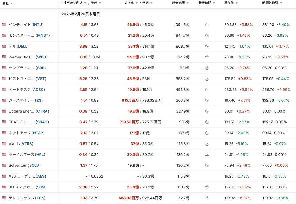 27日には予定がなく、28日に以下の主要銘柄の決算発表がなされる予定です。