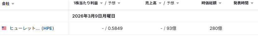 - 決算発表結果/予定: investing.com日本語版