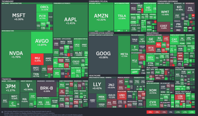 大幅落となった。中国市場での需要回復が想定を下回っていることに加え、アジアの免税店事業における在庫調整が長引いていることが嫌気された。主要な証券会社による投資判断の引き下げも重なり、収益見通しの不透明感が強まった。消費者の購買意欲減退への懸念から、セクター内でも特に厳しい売り圧力を受けた。 - FICO:Fair Isaac Corporation(工業・産業) -5.70%