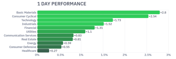 力強く反発した。米長期金利の急上昇に歯止めがかかったことで、半導体やソフトウェアなどのグロース株に値ごろ感からの押し目買いが集中した。 - 工業・産業(Industrials) +1.52%