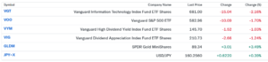 私のポートフォリオの1日の動きは、市場全体の荒波に揉まれる厳しい結果となりました。金先物(GLDM)が+3.49%と大きく上昇して支えてくれましたが、成長期待のVGTが-2.16%と売られたことが響き、全体ではマイナスとなりました。特にVGTの含み益がほとんどなくなってしまったのは悲しいですが、いつかまた力強く上がると信じて保有を続けます。来週は地政学的リスクの進展を慎重に見極めながら、新たな指値を入れて買い増しのチャンスを狙おうと思っています。