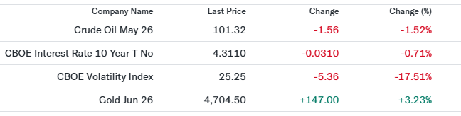 投資家の恐怖心理を示すVIX指数は大幅に低下し、25台まで落ち着きを取り戻した。前日に見られたパニック的なリスクオフの動きが収束し、市場に安堵感が広がったことが主因である。ボラティリティは急速に縮小したものの、地政学的リスクや経済指標の発表を控えて投資家が完全に楽観視しているわけではなく、依然として警戒水域にある。 - Gold Jun 26(4,704.50、+3.23%)