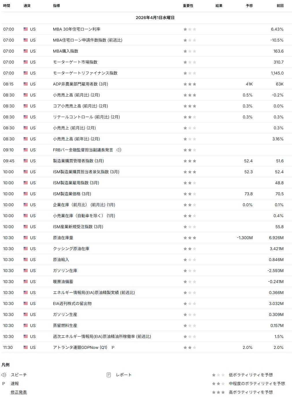 - 経済指標結果/予定: investing.com日本語版