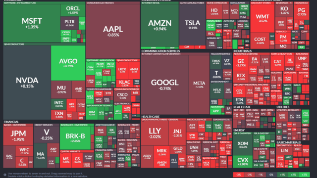 米国株投資 【20260225】US stock market investments Muroi Kazuo S&P500 ヒートマップ(高解像度) 5%以上上昇したS&P500構成銘柄 AXON:Axon Enter …