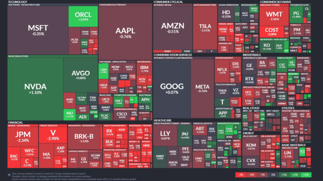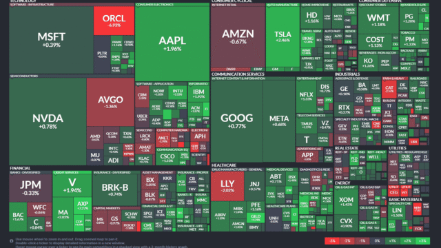 米国株投資 【20251015】US stock market investments Muroi Kazuo Let's all be happy S&P500 ヒートマップ(高解像度) AMD(Advanced Micro Devices) +9.40% Ora …