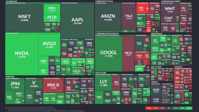 米国株投資 【20251215】US stock market investments Muroi Kazuo S&P500 ヒートマップ(高解像度) 3%以上上昇した主な銘柄 IT(Gartner Inc)先端技術 +5.33 …
