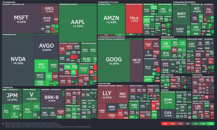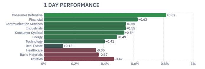 本日のセクター別騰落率は、全11セクターのうち8セクターが上昇、3セクターが下落する展開となった。全体として変動幅は1%未満に収まっており、雇用統計の結果を受けて市場が堅調さを維持しつつも、強気一辺倒にはなりきれない慎重な「様子見ムード」が漂う一日であった。