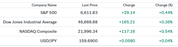 続伸し、過去最高値を更新する堅調な展開となった。朝方に発表された3月の米雇用統計が市場予想を大幅に上回る強い内容となり、米経済のソフトランディング(軟着陸)に対する期待が改めて高まったことが株価を押し上げた。一時は利下げ開始時期の後退懸念から金利が上昇し、上値を抑えられる場面もあったが、経済の底強さを好感する買いが優勢となり、幅広い銘柄が連れ高する形で引けた。 - Dow Jones Industrial Average(46,669.88、+0.36%)