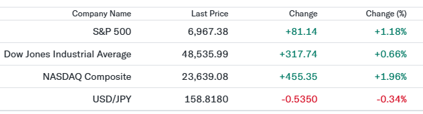- S&P 500(6,967.38、+1.18%)