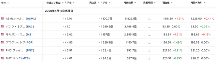- 決算発表結果/予定: investing.com日本語版