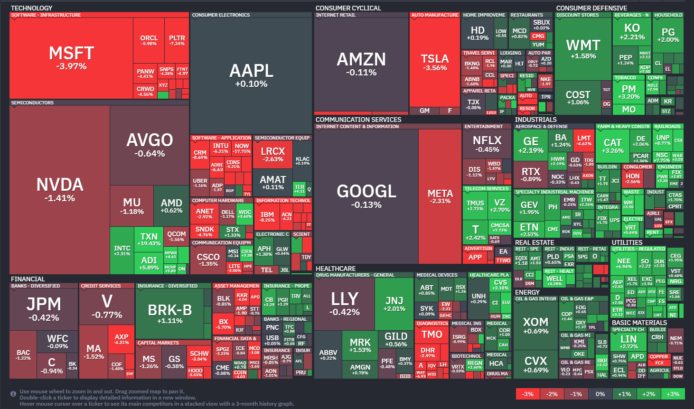 旅行需要は堅調ながら、消費者節約志向の高まりが警戒された。航空券・ホテル価格上昇で予約伸び率が鈍化するとの懸念もあり、景気敏感な旅行関連株として売られた。 - GPN:Global Payments Inc.(金融) -5.25%