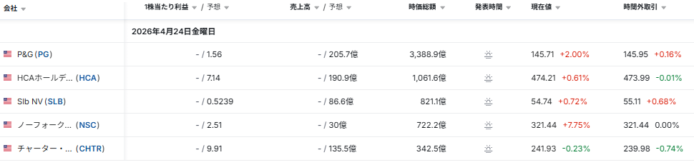 - 決算発表結果/予定: investing.com日本語版